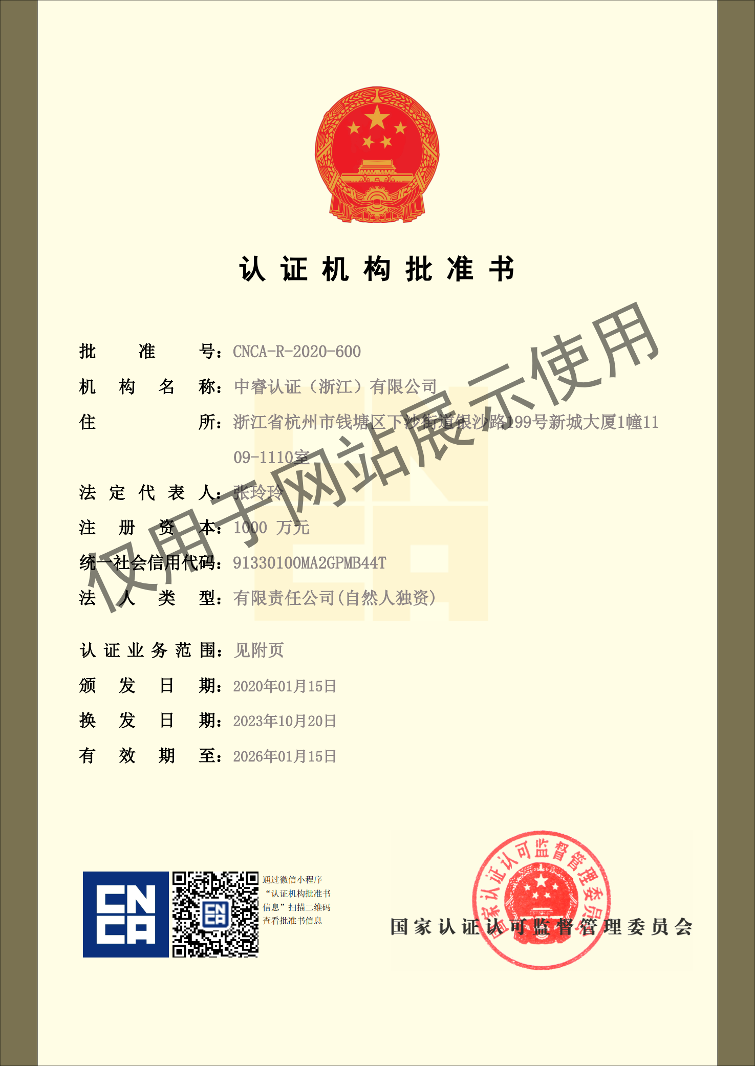 認(rèn)證機(jī)構(gòu)批準(zhǔn)書